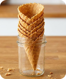 Crispy rolled sugar cone delivering golden crunch, sweet flavor, and perfect balance for every dessert moment.